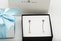 Staviori Kolczyki. Markazyty. 2 Naturalne Perły hodowane słodkowodne. Srebro 0,925. Długość 40 mm. Średnica kulki 5x6 mm.