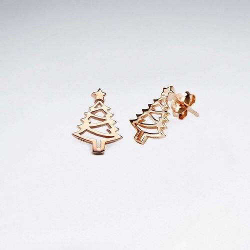 Staviori Kolczyki. Srebro 0,925. pokryte różowym złotem Szerokość 9 mm. Długość 14 mm. Wesołych świąt! Piękne kolczyki w kształcie choinki wykonane ze srebra próby 925 pokrytego 18-karatowym różowym złotem. Kolczyki zapinane na sztyft. Mogą być hitem zarówno na co dzień, jak i na imprezy! .