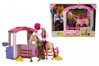Steffi w stroju dżokejki, z koniem z długą grzywą, ze stajnią i wieloma akcesoriami w zestawie.