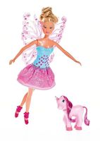 Lalka Steffi w stroju wróżki, której towarzyszy mały przyjaciel słodki Jednorożec.