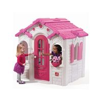 Uroczy biały domek w różowe serduszka z zamykanymi okiennicami, dekoracyjnym dachem ze świetlikiem i stylowymi drzwiami. Ze względu na kolory każda mała dziewczynka będzie się czuła w nim jak laleczka Barbie.