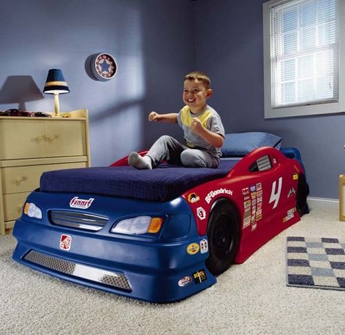 Łóżko typu "rośnij ze mną". Bezpieczne dla 2 latka i wygodne nawet dla 18 latka. Wykonane z masywnego i miłego w dotyku plastiku. Posiada opływowe kształty, wyższe boczne ścianki zabezpieczające przed wypadnięciem dziecka lub spadaniem kołdry. Lśniąca karoseria i dodatkowe ozdoby dodają szyku i wrażenie prawdziwego samochodu rajdowego. Zamontowany mały materac pozostawia wolną powierzchnię na łóżku specjalnie zaprojektowaną do zabawy małymi samochodami (drogi i trasy). Dla 6 letniego dziecka można zamontować już duży materac. Materace nie załączone.