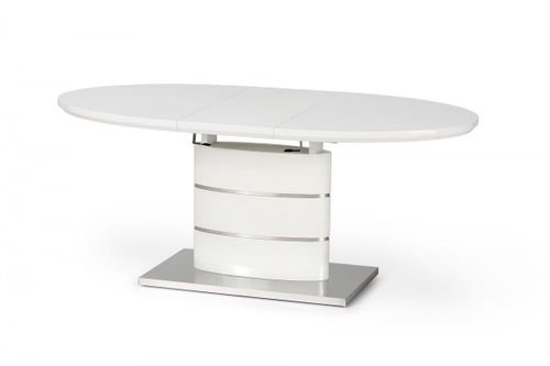 ASPEN to owalny stół w nowoczesnym stylu. Kolor biały jest bardzo neutralny. Stalowe dodatki w kolorze srebra. Możliwość rozłożenia do 180 cm.
