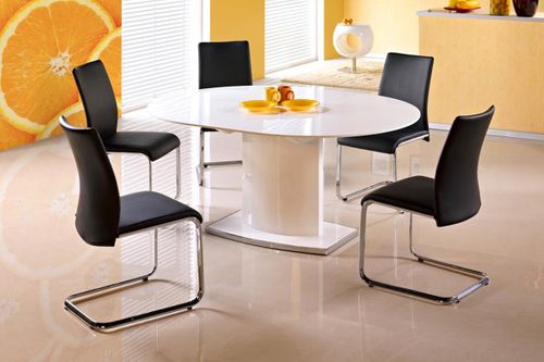 FEDERICO to stół świetnie wpasowujący się do eleganckich pomieszczeń. Biały owalny blat rozkłada się do 160 cm, dzięki czemu bez problemu pomieści wielu gości w Twoim domu.