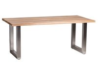 Stół Holz 160x90 to niezwykle solidny mebel użytkowy, który posłuży przez długie lata. Utrzymany w stylu industrialno-nowoczesnym wykonany z solidnego dębowego drewna, które jest gwarancją trwałości. Blat grubości 4cm został pokryty półmatowym lakierem zabezpieczającym przed wszelkimi zabrudzeniami. Podstawę stanowią niezwykle efektowne stalowe profile o grubości 7,5cmx7,5cm, z widoczną metalową półmatową strukturą.