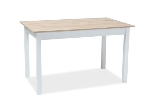 Stół HORACY rozkładany firmy Signal posiada stabilną podstawę wykonaną z płyty MDF w kolorze białym. Blat stołu zrobiono z laminowanej płyty meblowej w kolorze dębu. Stół posiada rozkładany blat umożliwiający na posadzenie około 8 osób.