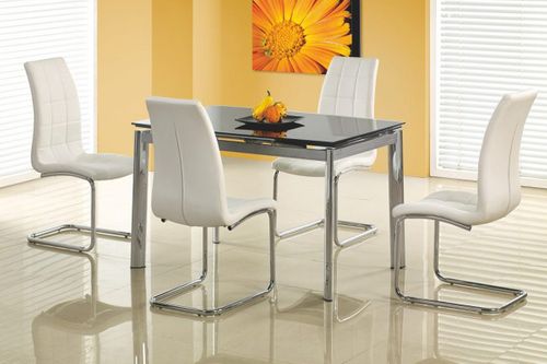 LAMBERT to wyjątkowo wyglądający stół. Czerń połączona ze srebrem i bezbarwną obwódką wygląda bardzo nowocześnie. Srebro nadaje także wrażenia luksusu i klasy. Dodatkowo możliwość rozłożenia do 180 cm.