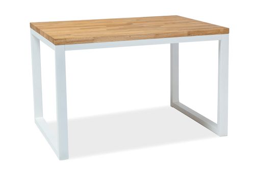 Stół LORAS 150x90 ma wytrzymałą, metalową podstawę malowaną proszkowo na kolor czarny. Blat zrobiony jest z drewna w naturalnym dębowym, kolorze, który bardzo dobrze się prezentuje i jest łatwy w utrzymaniu czystości. Stylistyka stołu do jadalni nawiązuje do coraz bardziej popularnego w Polsce stylu LOFT, cechującego się surowym i prostym wnętrzem. Nietypowy wygląd stelaża i jego kolorystyka doskonale dopasuje się do wnętrz w stylu industrialnym.