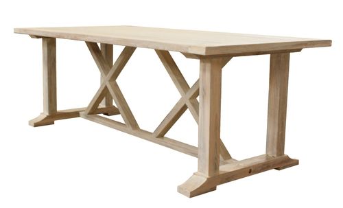 Protokątny stół ogrodowy Concept wykonany z bielonego drewna tekowego. Długi stół obiadowy o wymiarach 220x100cm i wysokości 77cm to klasyka i elegancja w jednym. Prosty drewniany blat oraz cztery nogi połączone ze sobą w finezyjny sposób, sprawiają, że stół ogrodowy Concept jest nie tylko stabilny, ale także pięknie prezentuje się w ogrodzie, czy na tarasie. Drewno tekowe zawiera w sobie substancje oleiste, które dobrze znoszą promieniowanie UV, a także wilgotność, przez co stół Concept to idealny pomysł do zewnętrznych aranżacji.