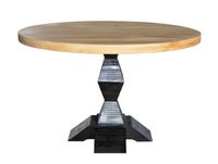 Dębowy stół Modo posiada okrągły blat olejowany, o naturalnym wybarwieniu i grubości 2,5cm. Stabilność stołu zapewnia drewniana, wybarwiona w czarnym macie noga. Drewniany stół to połączenie eleganckiego szyku z nutą tradycji.