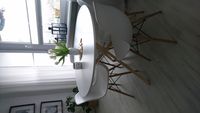 Nowoczesny stół o niepowtarzalnym kształcie, który idealnie wkomponuję się w aranżację w stylu nowoczesnym, skandynawskim, a także typu loft. Biały blat połączony z nietypowym drewnianym stelażem sprawia, że stół wygląda niezwykle oryginalnie. Przy stole swobodnie zmieszczą się cztery osoby.