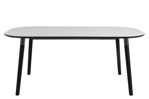 Stół Pippolo b/w M to połączenie klasycznych kolorów w prostej formie. Czarne drewniane półmatowe nogi zostały zamocowane na metalowych chromowanych wspornikach, które perfekcyjnie komponujną się z całością mebla. Blat wykonany został z płyty MDF w kolorze białym.