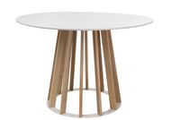 Stół Vertical to połączenie nowoczesności i skandynawskiego stylu. Niecodzienny kształt podstawy został wyprofilowany w taki sposób aby zapewnić wygodę użytkowania. Podstawa wykonana została z drewna dębowego co zapewnia solidność i trwałość. Drewniany blat malowany na kolor biały, wykończony w półmacie doskonale współgra z lakierowaną podstawą.