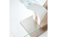 VILMER to wyjątkowy stół, który łączy w sobie przeźroczysty blat oraz biało-dębowe nogi. Cechą najbardziej charakterystyczną są nogi, które łączą się ze sobą.