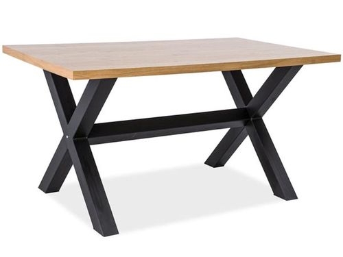 XAVIERO 150 firmy SIGNAL to uniwersalny stół, który nadaje się do każdego wnętrza. Solidny blat w kształcie prostokątnym pokryty okleiną naturalną oraz metalowe nogi łączące się pod skosami nadają mu niebanalnego wyglądu. Materiały współgrają ze sobą, co widać na zdjęciach, w dodatku kolor dębu z czernią nóg pięknie kontrastuje dając wspaniały efekt wizualny. Mebel ma solidne wymiary, dzięki czemu pomieści sporą liczbę osób. Do tego stołu dobrze dobrane krzesła spełnią funkcję dopełnienia całości i nadadzą zestawowi nietuzinkowego wyglądu.