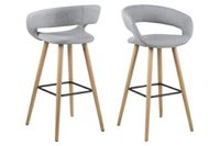 Stołek barowy Grace to doskonałe rozwiązanie do otwartej kuchni czy jadalni z wysoką wyspą. Siedzisko tapicerowane zostało wysokiej jakości tkaniną w kolorze jasnej szarości. Podstawę stanowią dębowe nogi dodatkowo pokryte warstwą oleju, która uwydatnia walory drewna.
