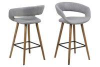 Stołek barowy Grace to doskonałe rozwiązanie do otwartej kuchni czy jadalni z wysoką wyspą. Siedzisko tapicerowane zostało wysokiej jakości tkaniną w kolorze jasnej szarości. Podstawę stanowią dębowe nogi dodatkowo pokryte warstwą oleju, która uwydatnia walory drewna.