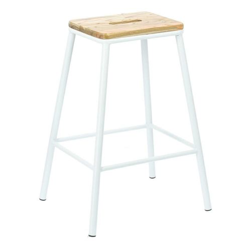 Stołek barowy Seattle został zrobiony z prostokątnego sosnowego siedziska oraz metalowej pomalowanej na biało podstawy. Siedzisko posiada podłużne wycięcie, które ułatwia przenoszenie stołka. Cztery nogi hokera zostały ze sobą połączone dzięki wspornikom, które nie tylko pełnią funkcję podnóżka, ale również sprawiają, że stołek jest bardziej stabilny. Maksymalne obciążenie: 120 kg Stołki sztaplują się. Głębokość siedziska: 25 cm, Szerokość siedziska: 32 cm. Wysokość: 66