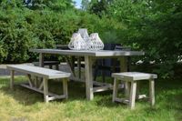 Forma mebla sprawia, że wygląda on elegancko i pięknie komponuje się ze stołem ogrodowym i ławką Klosters Dark Grey, tworząc spójną całość.