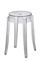 Przezroczysty stołek. Nie zajmuje miejsca w przestrzeni. Nadaje się do,użytku zewnętrznego i wewnętrznego.,Jest idealnym uzupełnieniem kolekcji krzeseł transparentnych. Stołek dostępny jest również w wersji barowej 66 cm i 75 cm wysokości.Maksymalne obciążenie wynosi 120kg