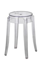 Przezroczysty stołek. Nie zajmuje miejsca w przestrzeni. Nadaje się do,użytku zewnętrznego i wewnętrznego.,Jest idealnym uzupełnieniem kolekcji krzeseł transparentnych. Stołek dostępny jest również w wersji barowej 66 cm i 75 cm wysokości.Maksymalne obciążenie wynosi 120kg