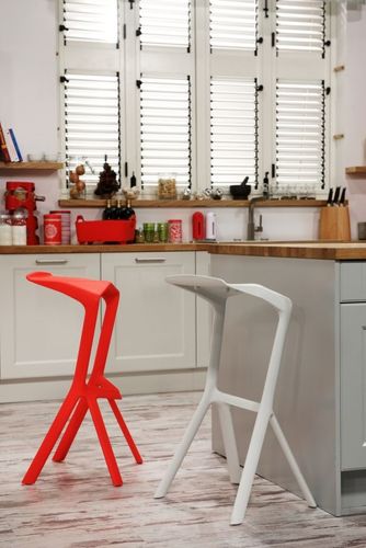 Stołek inspirowany Miura został wykonany z pojedynczego odlewu polipropylenu wzmacnianego włóknem szklanym. Jego kształt przynosi na myśl energię,i moc. Jednocześnie cała konstrukcja jest bardzo stabilna.