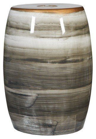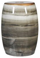 Okrągły stołek Stone o średnicy 33cm i wysokości 46cm. Stołek przenikają trzy odcienie: szary, biały i złoty. Zwężany ku dołowi stołek w formie walca, został wykonany w całości z ceramiki. Szlachetność materiału i zastosowanie delikatnych, luksusowych kolorów sprawia, że stołek doskonale wkomponuje się w nowoczesne wnętrza. Stołek Stone może służyć zarówno jako siedzisko, ale także jako element dekoracyjny.