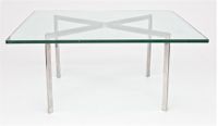 Kolekcja Barcelona powstała w 1929 roku. Stolik jest uzupełnieniem całej kolekcji Barcelona w skład której wchodzi fotel Barcelona i podnóżek Barcelona. Baza wykonana z polerowanego aluminium. Szkło blatu ma 12 mm grubości.,Prezentowany produkt jest inspirowany projektem stolika Barcelona. Wysokość: 45