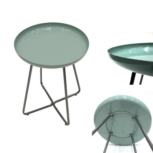 Stolik Bricka świetnie sprawdzi się we wnętrzach urządzonych w stylu industrialnym i nowoczesnym. Zielony blat wykonany został z metalu i pomalowany na wysoki połysk. Takie wykończenie stolika wprowadzi do pomieszczenia elegancki klimat. Kształt blatu przypominający tacę zabezpieczy przedmioty przed upadkiem ze stolika. Średnica blatu wynosi 40 cm. Podstawa stolika składa się z 4 nóg w kolorze szarym. Takie rozwiązanie nadaje wizualnej lekkości, dzięki czemu mebel doskonale dopełni aranżację, bez jej obciążania. Waga stolika: 1,9 kg Max. ilość szt. w kartonie: 1 Wymiary kartonu: 40,5 cm x 15,6 cm x47,8 cm Wysokość: 48,5