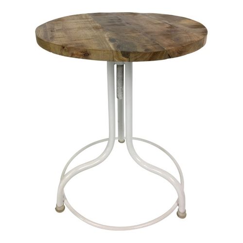 Stolik Cottage W Jest praktyczny i zachwycający. Podstawa wykonana została z białego metalu a blat z naturalnego surowego drewna z widoczną fakturą co dodaje niepowtarzalnego designu. Posiada on możliwość regulacji co sprawia, że podczas użytkowania sprawdzi się w każdym miejcu i dopasuje do różnej wysokości krzeseł.