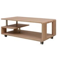 Praktyczny stolik kawowy do salonu pozwoli w designerski i praktyczny sposób utrzymać przestrzeń uporządkowaną dzięki wbudowanym otwartym półkom w których znajdzie się miejsce na sprzęt multimedialny, książki, prasę i inne drobiazgi, które zawsze chcesz mieć pod ręką. 4 praktyczne kółka, w tym 2 z hamulcami, ułatwią jego przestawianie. Solidna konstrukcja czyni mebel trwałym.
