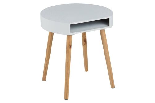 Stolik w skandynawskim stylu Ela to doskonałe rozwiązanie dla osób szukających alternatywy dla klasycznej szafki nocnej. Stolik posiada półkę, w której można przechować ulubioną książkę, smartphona czy gazetę czytaną przed snem. Stolik jest niezwykle lekki ponieważ waży zaledwie 2,9kg, wymaga samodzielnego montażu. Górna część stolika wykonana została z płyty MDF w kolorze szarym o matowym wykończeniu, podstawa wykonana została z drewna sosnowego, dodatkowo polakierowanego.