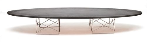 W latach 50-tych dwudziestego wieku Eames spędził dużo czasu eksperymentując z drutem jako materiałem do użytku przy tworzeniu mebli. Powstały wtedy kolekcje mebli wykonanych z tego materiału. Tak też było z Eames Elliptical Table. Powstał w 1951 roku. Ma podstawę wykonana z drutu. Blat jest pokryty laminatem. Blat przypomina kształtem deskę surfingową, ponieważ Eamsowie byli zachwyceniem widokiem na ocean, który posiadali za oknami ich kalifornijskiego domu i biura.,Sprzedawany produkt jest in
