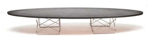 W latach 50-tych dwudziestego wieku Eames spędził dużo czasu eksperymentując z drutem jako materiałem do użytku przy tworzeniu mebli. Powstały wtedy kolekcje mebli wykonanych z tego materiału. Tak też było z Eames Elliptical Table. Powstał w 1951 roku. Ma podstawę wykonana z drutu. Blat jest pokryty laminatem. Blat przypomina kształtem deskę surfingową, ponieważ Eamsowie byli zachwyceniem widokiem na ocean, który posiadali za oknami ich kalifornijskiego domu i biura.,Sprzedawany produkt jest in