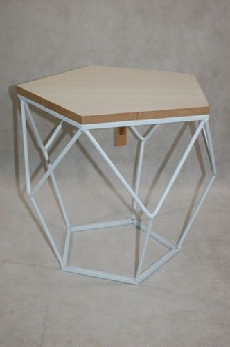 Stolik Hexi to design i oryginalność, którą już niedługo możesz mieć w swoim domu. Wykonany z płyty MDF i metalu tworzy zachęcającą całość.Idealnie sprawdzi się jako stolik kawowy do nowoczesnego salonu lub stolik nocny do sypialni. Stolik ma uszkodzenie blatu na jednym narożniku. Uszkodzenie widoczne jest na zdjęciu. Wysokość: 37,5