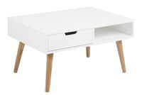 Niezwykle praktyczny, prosty i zachwycający stolik kawowy Mitra to doskonały mebel, który ułatwi porządkowanie Twoich rzeczy i umili czas spędzony w salonie. Zrobiony z wysokiej jakości płyty MDF z szufladą ułatwiającą uporządkowanie rzeczy oraz półką prezentuje się stylowo.Nogi wykonane zostały z drewna dębowego. Doskonale sprawdzi się w każdym pomieszczeniu. Wysokość: 45,5