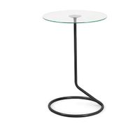 Ten stolik nie zajmie w salonie wiele miejsca! Oryginalny, umieszczony na jednej nóżce, która kończy się okrągłą podstawą i pozwala swobodnie wyciągnąć pod stolikiem nogi. Szklany blat wieńczy dzieło! Wersja w kolorze czarnym. Wysokość: 56 cm Szerokość: 38 cm Głębokość: 38 cm