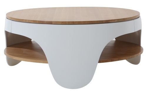 Blat oraz półka wykonana z płyty fornirowanej w kolorze jesion. Podstawa biała z polipropylenu. Średnica: 82 cmWysokość całkowita: 37,5 cmGrubość blatu: 15 mmMaksymalna ilość szt. w opakowaniu: 1Sposób wysyłki : PaczkaProdukt do samodzielnego montażu: Tak Wysokość całkowita [cm]: 37,5 Szerokość [cm]: 82 Głębokość [cm]: 82