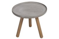 Okrągły stolik kawowy Ozzy to mebel, który zabłyśnie w Twoim salonie i idealnie sprawdzi się podczas wizyty przyjaciół. Połączenie masywnych nóg wykonanych z litego drewna i betonowego impregnowanego blatu wprowadza w naturalny i industrialny styl a odporność na zabrudzenia zwiększa jego funkcjonalność. Stolik Ozzy dostępny jest w dwóch wielkościach.