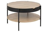 Stolik Tipton Big to połączenie płyty melaminowej z fakrurą dębu i matowego metalu malowanego proszkowo. Pod blatem ukryta jest półka, w której możesz schować swoje skarby lub inne przedmioty. Pod blatem znajduje się również półka, która dodaje funkcjonalności. Całość wygląda rustykalnie i estetycznie. Wysokość: 45