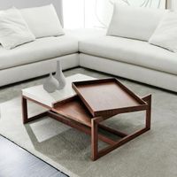 Szukasz oryginalnego stolika kawowego, który nie tylko zachwyca swoją form�� ale jest także bardzo funkcjonalny? Odpowiedzią jest stolik Tray Small. Zaletą stolika jest możliwość używania dwóch części blatu jako przenośnych tac co sprawia, że jest nie tylko niezwykle efektowny ale także funkcjonalny. Blat w kolorze białym wykonany został z lakierowanej na wysoki połysk płyty MDF, podstawa i częśc blatu to okleina naturalna - formir dębowy o odcieniu orzech. Stolik dostępny jest w dwóch rozmiarach i trzech wersjach kolorystycznych.