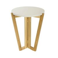 Stolik Windmill Round 450 wykonany został z litego drewna dębowego i lakierowanej płyty MDF w kolorze białym. Grubość blatu wynosi 2,7cm. Atutem stolika jest to, że nie wymaga on żadnych narzedzi ani śrub do zmontowania.Podstawa wykonana jest z profili dębowych o przekroju 40x25 mm w formie ramek. Całość konstrukcji połączona jest solidnymi zawiasami mosiężnymi umozliwiajacymi łatwe rozłożenie oraz złożenie stolika co jest bardzo przydatne w szczególnosci w małych pomieszczeniach.Podstawa została wykonana z drewna dębowego a całość konstrukcji polakierowana jest półmatowym lakierem o podwyższonej twardości.