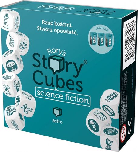 Story Cubes: Science Fiction są zestawem w którym odnajdziemy dodatki 3 kostkowe: Potwory, Galaktyka i Atom. Posiadają 54 ikonki opisujące większość najważniejszych słów, które pozwolą nadać naszym opowieściom rys fantastyczny, a nawet kosmiczny! Dzięki nim nasi bohaterowie odwiedzą nieznane miejsca i spotkają na swojej drodze masę fantastycznych stworzeń.