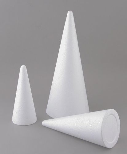Stożek styropianowy o wysokości 20cm, średnica podstawy 9cm. Przedmiot bardzo solidnie wykonany, styropian gęsty, dobrze zbity. Produkt wykonany w Polsce. Przedmiot można ozdabiać na wszelkie możliwe sposoby- malować farbami, kredkami, wyklejać, ozdabiać metodą decoupage oraz pozłacać.