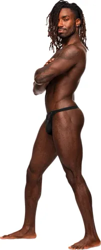 Z kolekcji Male Power Magnificence ten styl obejmuje stringi Micro V z wyciętym okienkiem w talii, ozdobnymi metalowymi przelotkami i smukłą, pluszową elastyczną talią z wstawką z tkaniny w kształcie litery V z tyłu.