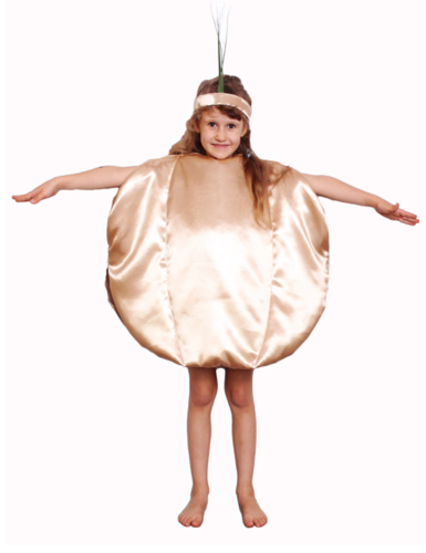 Na widok tej pięknej cebuli od razu nasuwają się na myśl słowa wiersza Jana Brzechwy. Każda inscenizacja teatralna, w której występują jarzyny i warzywa, nie obejdzie się bez tego typu kostiumu. Strój sprawdzi się również na balu przebierańców i innych takich imprezach. Wykonany z atłasu posiada uniwersalny rozmiar pasujący na dzieci o wzroście od 100 do 150 cm. W skład stroju wchodzi bluza oraz czapeczka z listkami.