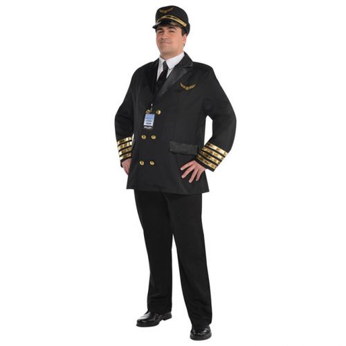 Strój wykonany z tkaniny poliestrowej dobrej jakości - nie elastyczny materiał. Marynarka w kolorze czarnym ozdobiona złotymi guzikami i pasami na rękawach. Przód białej koszuli zawiązywany z tyłu z krawatem w kolorze czarnym, kołnierzyk zapinany z tyłu na rzep. Czapka z daszkiem z nadrukiem złotego emblematu skrzydeł. Kostium uzupełnia smycz z identyfikatorem. Oryginalny strój wysokiej jakości renomowanej amerykańskiej firmy Amscan.
