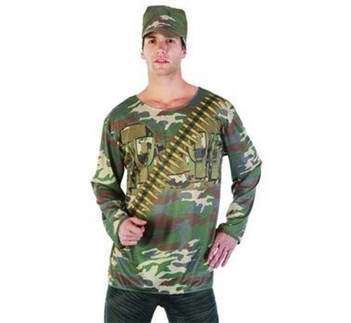 Strój wykonany z tkaniny poliestrowej - elastyczny materiał. Na bluzie nadruk zapasowej amunicji.