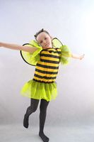 Strój wykonany jest z 100% bawełny, nieelastyczny materiał, wykończenia z tiulu. Sukienka zawiązywana z tyłu. Skrzydełka zakładane na gumkę. Opaska na głowę z czułkami w gumkę.