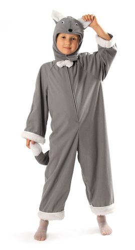 Strój składa się z kombinezonu z ogonem i czapeczki. Całość wykonana z materiału przypominającego welur, ozdobiona futerkiem.
